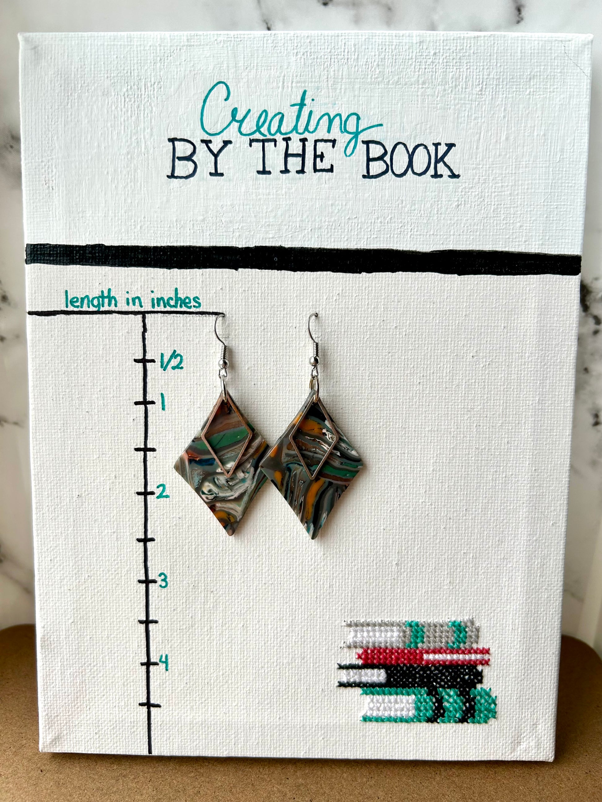 - Material: Polymer clay, stainless steel hooks, metal diamond shape