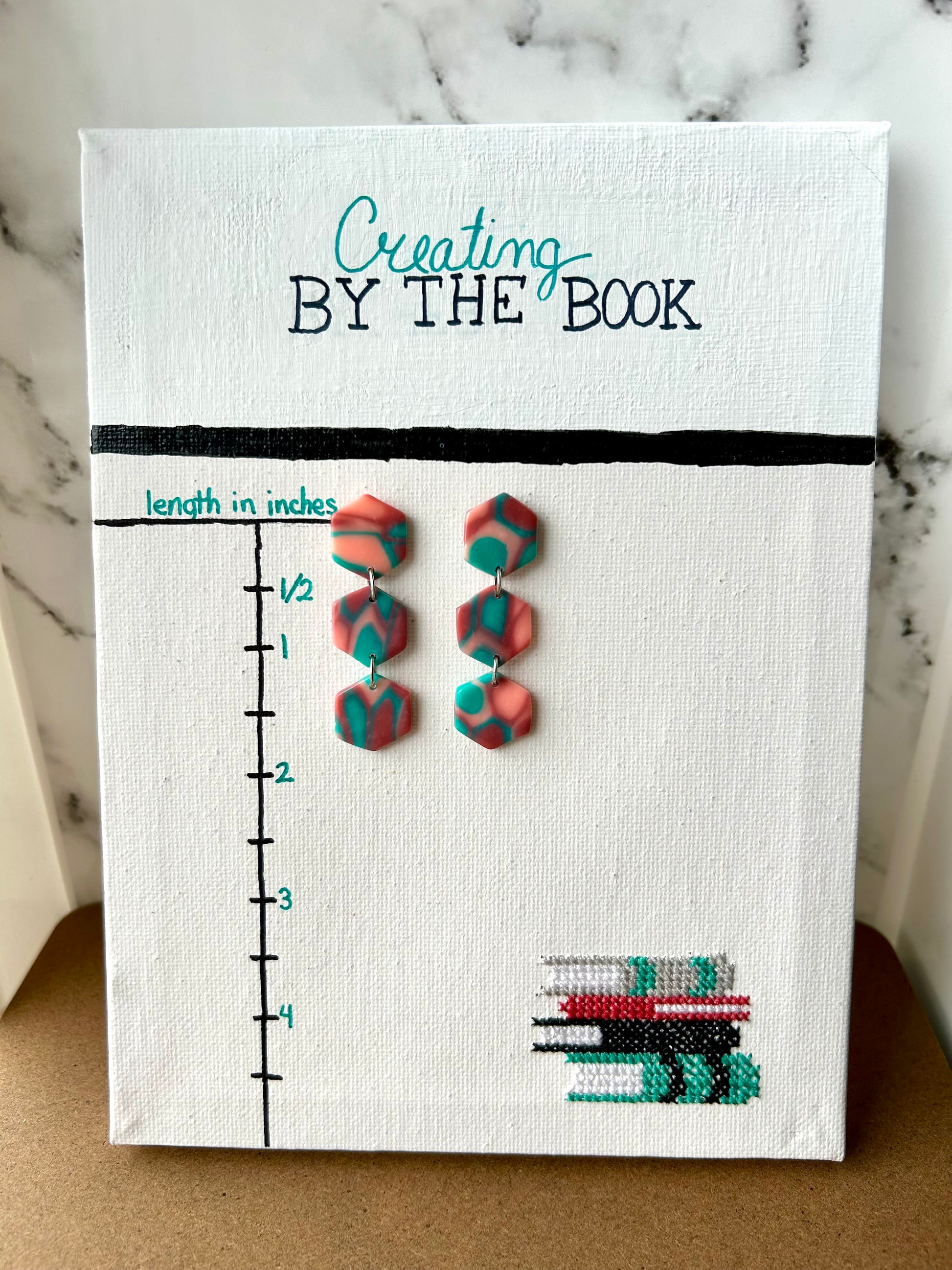 Add some color to your outfit with our Pink and Aqua Chloe Stud Dangle Earrings. These lightweight earrings feature hexagon shapes made from polymer clay, adding a unique touch to your style. The stud dangle design ensures a secure fit, making them perfect for any occasion.