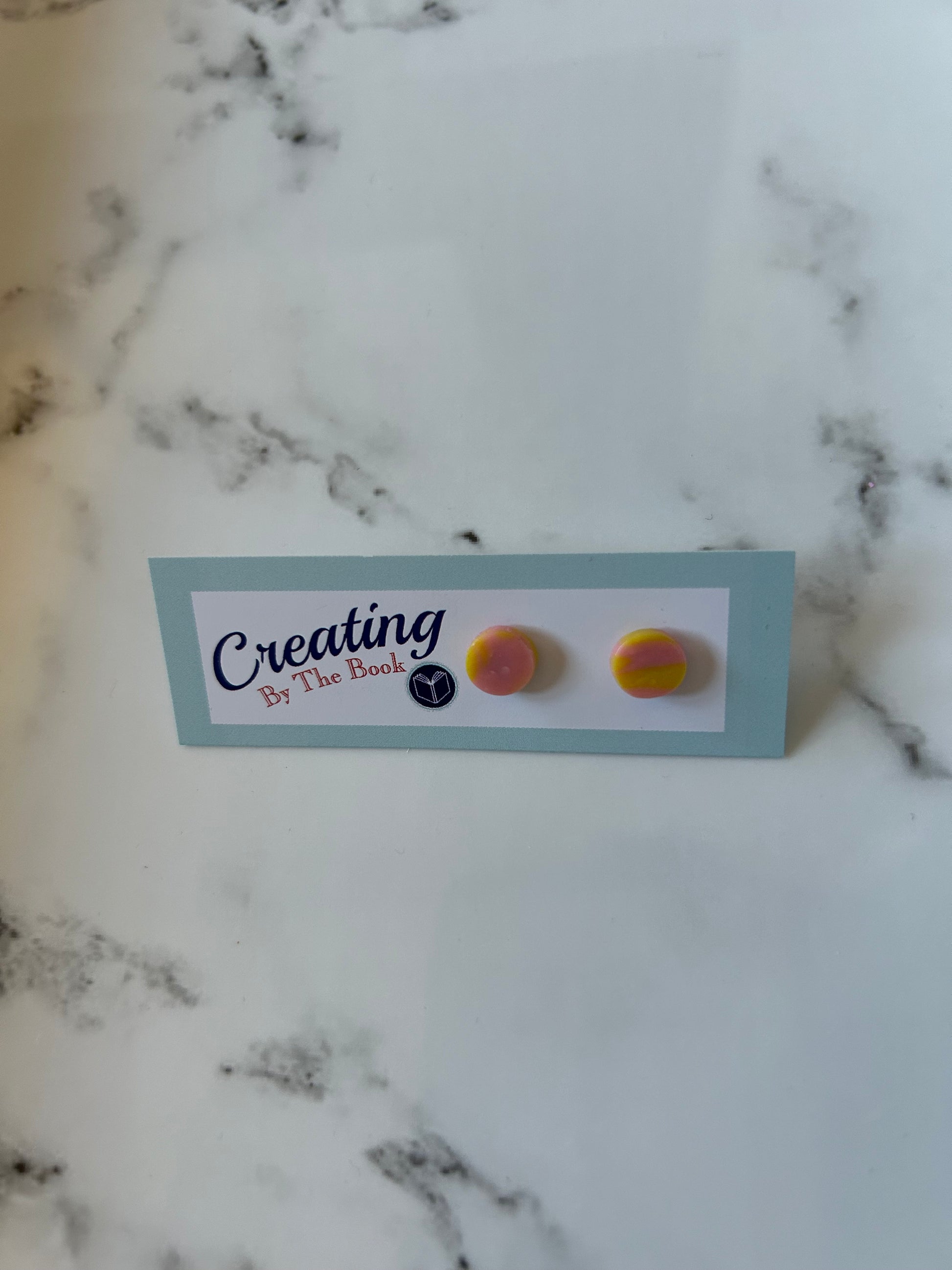 Add a cheerful pop of color to your ears with these adorable handmade round stud earrings. At approximately a quarter inch in diameter, these tiny treasures offer a perfectly subtle yet vibrant statement. Each stud features a delightful blend of pink and yellow polymer clay, bringing a touch of sunshine and playful energy to your look. Incredibly lightweight and comfortable for all-day wear, these pink and yellow polymer clay earrings are a charming and versatile addition to any jewelry collection, perfect for everyday wear or a subtle splash of handmade artistry.